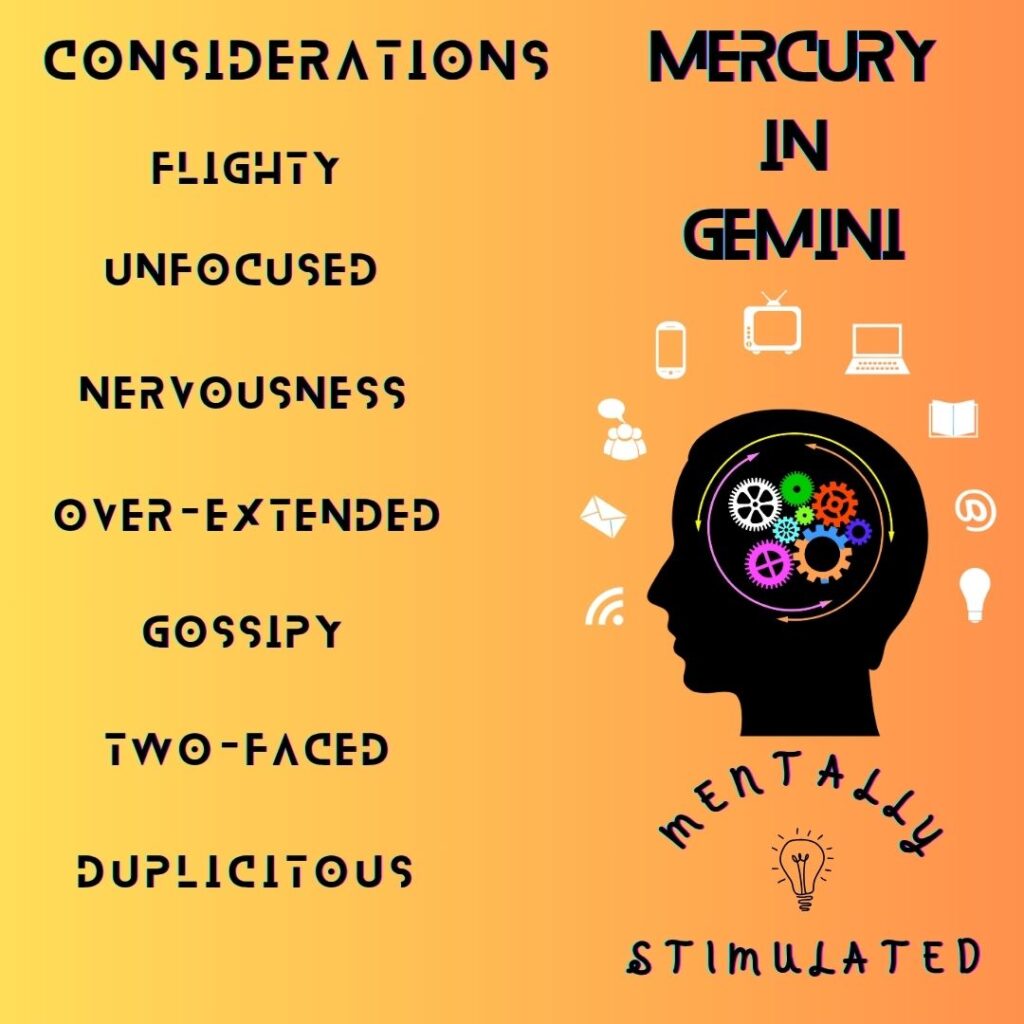 Because of the heightened Mercury energy, there is a chance of mental and nervous system overloads. Make sure to do something productive with this mental energy like communicating, socializing, learning, and connecting to others in a positive way. Be a busybody in a good way, and avoid gossip and duplicity which are some of the less desirable traits of Mercury/Gemini energy.